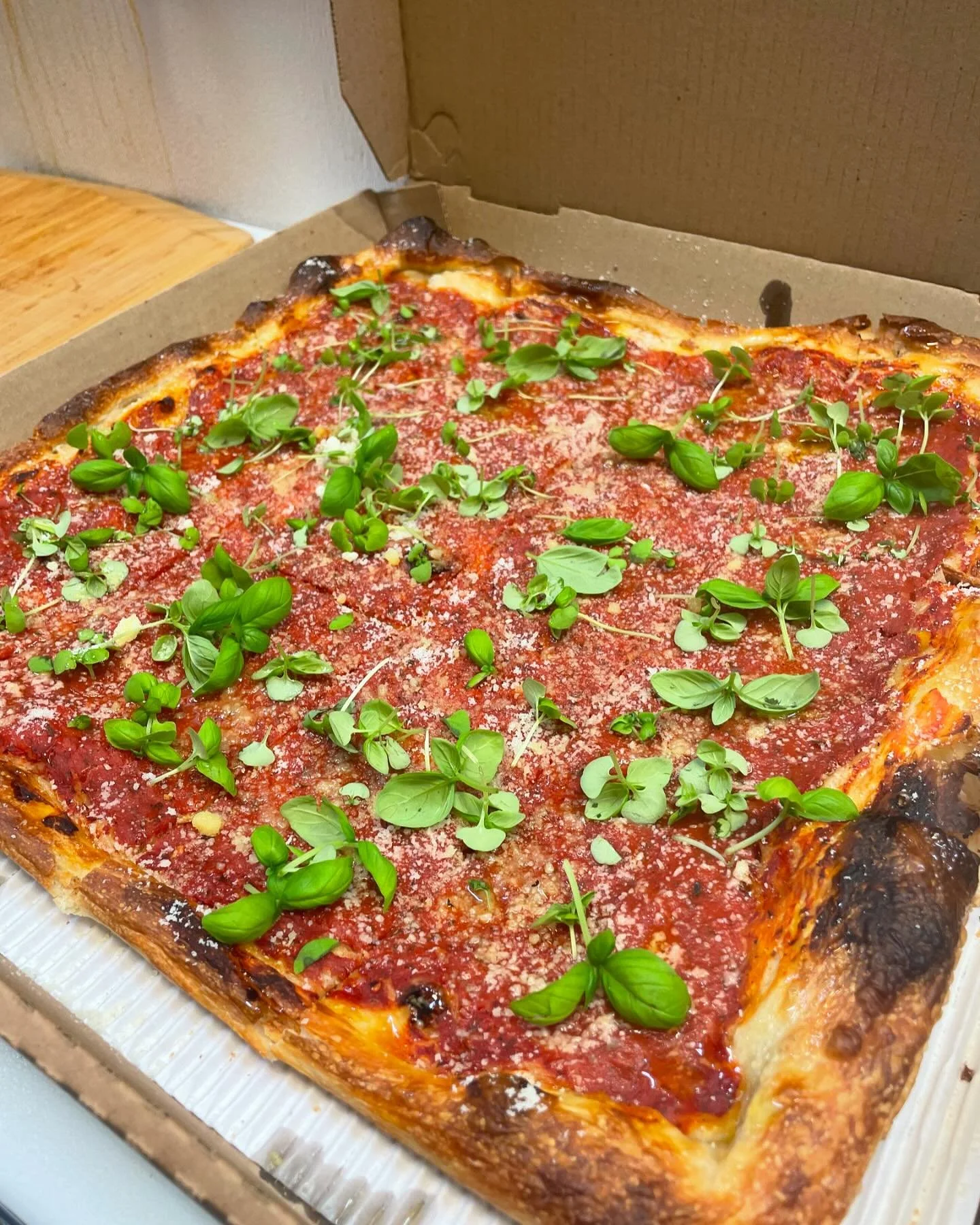 GREAT pizza! What a high quality job they did renovating it into a sweet pizzeria with authentic Sicilian flair. We had the white pizza with ricotta, garlic, pistachios and hot honey. Yummy! The best crust I’ve ever had and it will be my definite go to for pizza now! You’d be crazy not to try it!